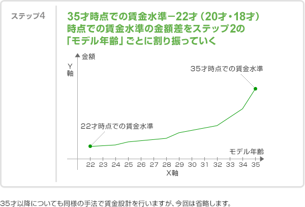 賃金制度の設計の仕方として従来から最も多く用いられている手法が“モデル年齢を基準にした賃金設計”です。概略を紹介すると次のとりです。