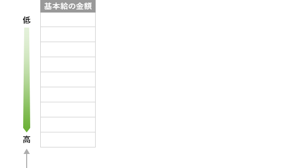 <はじめに>で示した表にあるとおり、基本給の低いところから高いところへ向かって金額を決めていきます。
